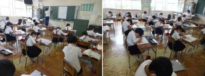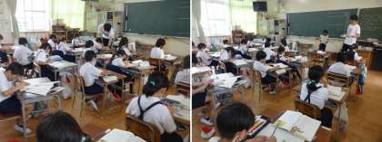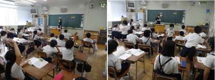 先生のお話を聞いて、自分の考えを発表したり、ノートに書き込んだりしていました。