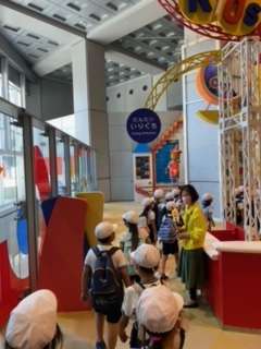 電車では静かにマナーを守って移動して、館内では、元気いっぱいに体験遊びをしていました。