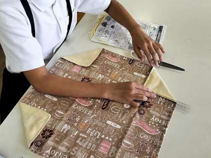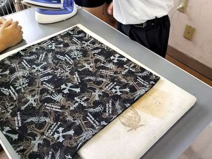 6年生が家庭科室で、お弁当包みを作っていました。さすが6年生、ミシンやアイロンを班のみんなで譲り合い、声を掛け合いながら協力して作っていました。完成まであと少しです。