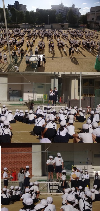 10月14日(木)朝から児童集会が運動場で行われました。最初に、4〜6年生の学級代表が自分の名前と「こんな学校にしたい」という抱負を発表しました。