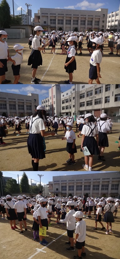 次に、集会委員会主催の「班長に勝てゲーム」をしました。ひめっこ班(たてわり班)ごとに班長さんとじゃんけんをして、班長に勝てば班長の後ろに回り、あいこや負けた子は最後尾に回って再挑戦するというルールで、早く全員が勝って座るようにするゲームでした。久しぶりに班のメンバーと仲よく楽しむ姿が見られてよかったです。