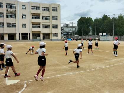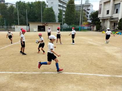 3年生が「キックベース」の学習を運動場でしていました。