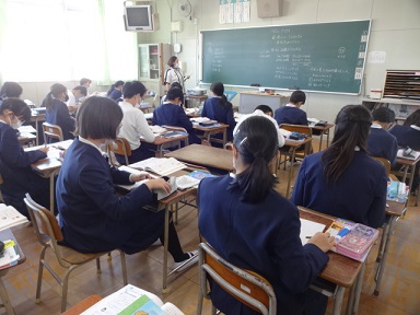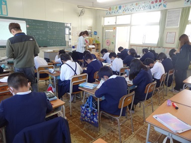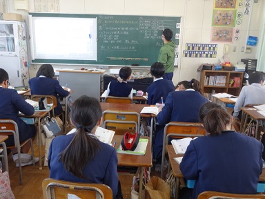 6年生が算数科「表を使って考えよう」の学習を3分割の少人数で学習していました。2つの変化する数の変わり方を表や式で表す内容で、みんな熱心に取り組んでいました。