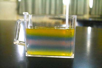 容器の周りを黒画用紙で覆っているのでどのように重なっているか外からは見えません。