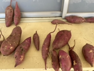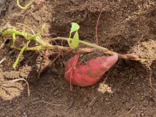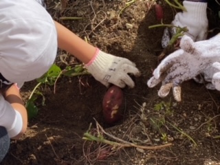2年生の学習園で育てたさつまいもを今日収穫しました。今年は育ちが良く、大きないもがたくさん掘れました。