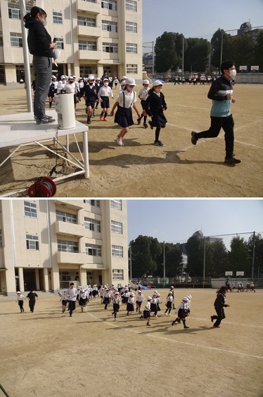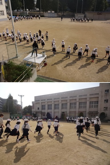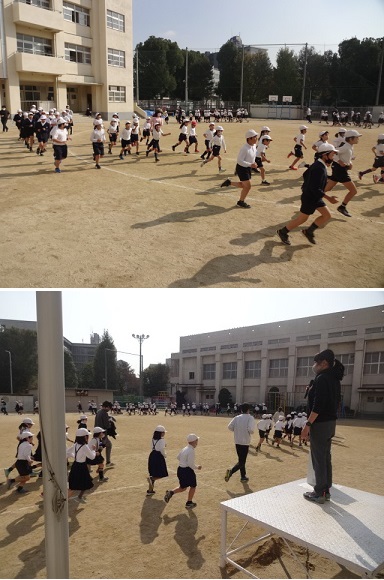 11月16日(火)「かけ足練習週間」が始まりました。2・3時間目の間の休み時間に、今日は2年生と5年生がトラックの内と外に分かれて走りました。