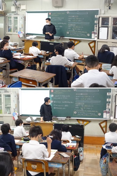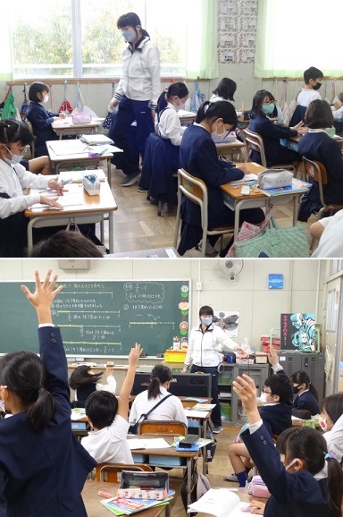 3年生が算数科「分数」の学習をしていました。何分のいくつという分数の表し方とその意味を学んでいました。