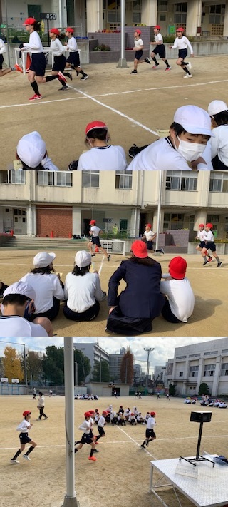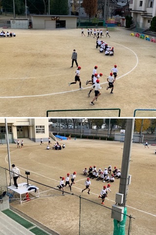 6年生が体育科の時間に、耐寒かけあしで記録(2回目)を測定していました。運動場のトラック15周のタイムを測って、1回目に測定したタイムと比べて記録がよくなった子が多かったようです。練習の成果がありました。