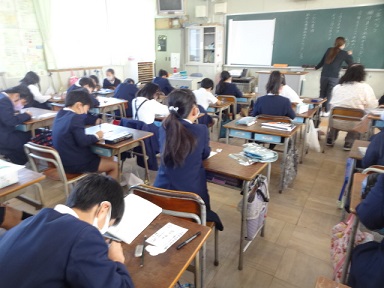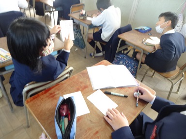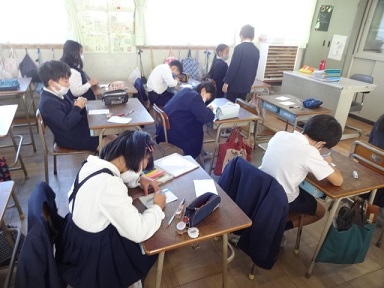 12月15日(水)3年生がはがきを書く学習に取り組んでいました。家族などに出す年賀状やクリスマスカードを作っていました。「来年の干支のトラはどう描いたらいいかなあ」って楽しそうでした。