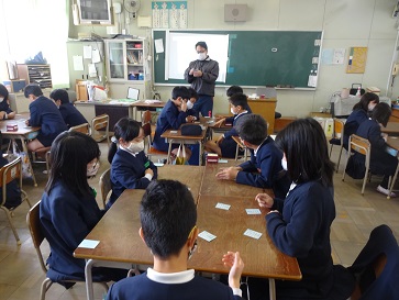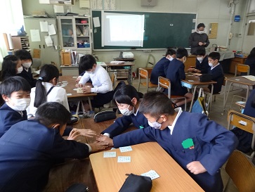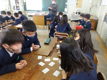 4年生が百人一首のカルタ取りをしていました。一枚でも多く、カードを取ろうとみんな一生懸命でした。