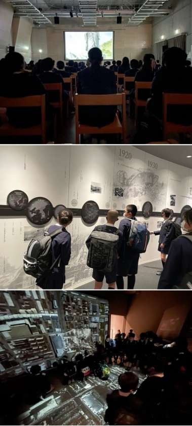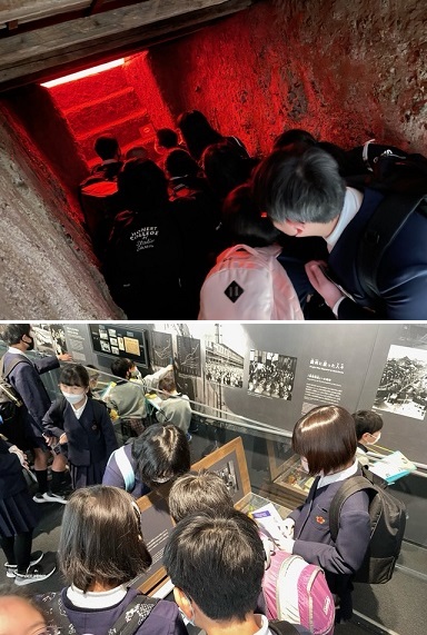 まず、ピースおおさかで平和学習をしました。初めに戦争に関する映画をみて、その後ピースおおさか館内を班ごとに見学しました。みんな当時のことについて、真剣に学習できました。