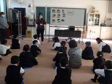 1月19日(水)1年生が発育測定の前に、かぜの予防について学習をしていました。かぜの症状や予防、かかったときの対処法を学んでいました。マスクの正しい使い方なども教えてもらっていました。