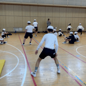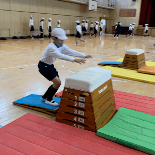 6年生が体育科の時間に、反復横跳びの測定をしていました。1m間隔の3本のラインを20秒間でまたいだ回数を調べます。今回は2回目の測定でしたが、伸びたようです。その後、跳び箱運動で、かかえこみ跳び(足を閉じて跳ぶ)の練習をしていました。