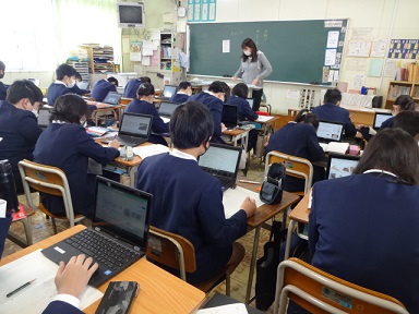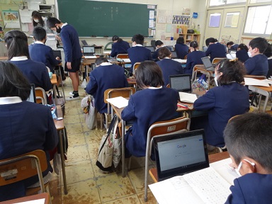 6年生が「お仕事新聞」づくりに取り組んでいました。クロムブックを使っていろいろな職業を調べ、その中から自分の気に入った職業を選んで、それぞれに工夫して新聞にまとめていました。