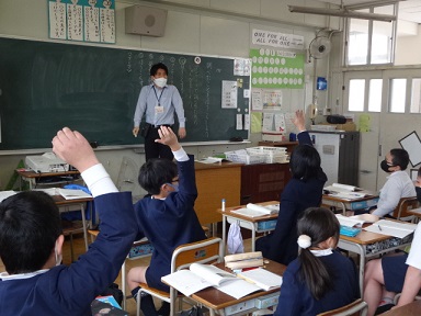 4年生が国語科「調べたことを報告しよう」の学習に取り組んでいました。どんなことを調べるのか、調べたいことを発表していました。