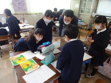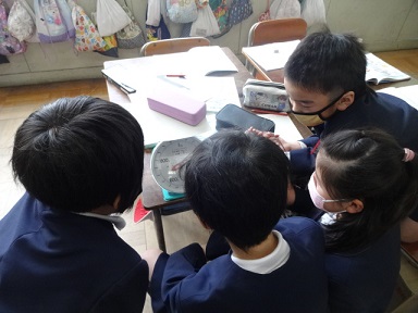 2月15日(水)3年生が理科「ものと重さ」の学習で、上皿ばかりを使ってものの重さを調べていました。グループで協力して楽しそうに取り組んでいました。