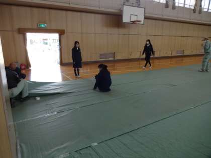 卒業を祝う会の後に、5年生が講堂で卒業式向けての準備をしていました。みんな積極的に取り組んでおり、スムーズに準備ができました。