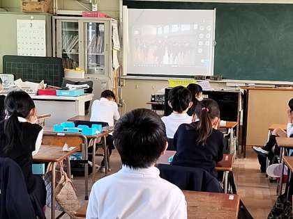 卒業を祝う会で1〜5年生は、自分たちが発表する以外の時間は教室で講堂の他学年の発表の様子をリモート中継で鑑賞していました。