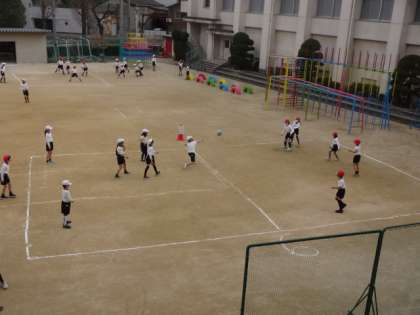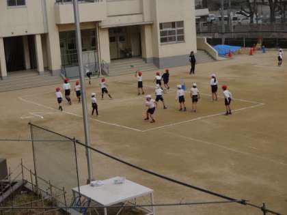 先日、3年生が3クラス合同で運動場でドッジボール大会を行っていました。運動場にかかれた6面のコート使って、子どもたち同士声を掛け合いながら、とても楽しそうに取り組んでいました。
