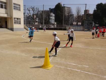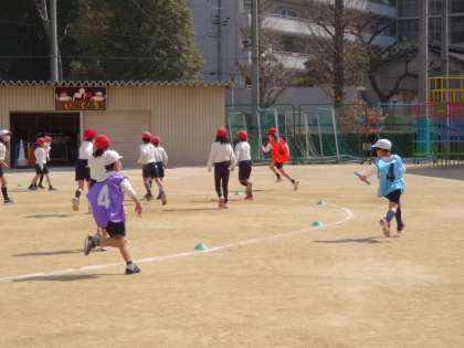今日の4時間目に3年生が運動場で3クラス合同でリレーを行っていました。上手にバトンをつなぎ、チーム一丸となって応援しあい、一生懸命に走っていました。とても盛り上がっていました。