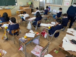 縄跳びを跳んでいる自分の表情も工夫しながら作成していました。