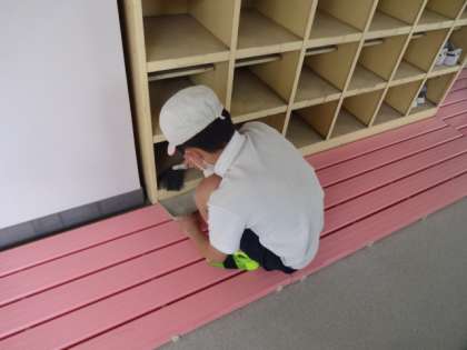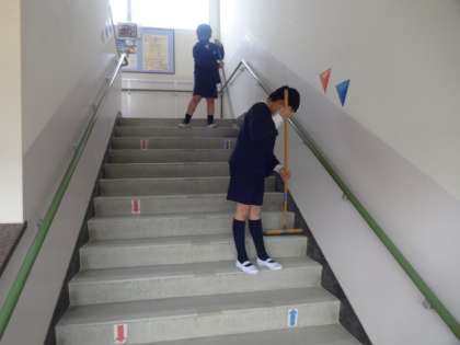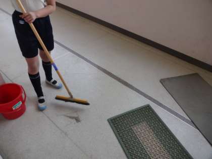 今日のお掃除の様子です。教室内だけでなく、廊下や階段、靴箱など、みんなで使う場所も分担してきれいにお掃除してくれています。