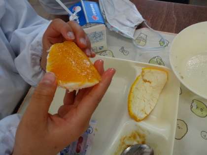 給食「上手に皮がむけたよ」