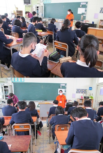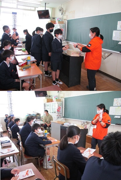 保健室の先生が6年生一人一人の6年間の成長の記録をまとめ、子ども達に渡していました。紙を結んだテープの長さが6年間に伸びた身長差になっていることを説明すると、「こんなに成長したんか。」と感慨深げでした。