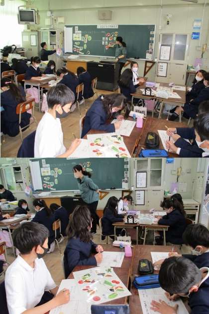 3年生が栄養指導で「しゅんについて知ろう」の学習をしていました。しゅんとは食べ物がたくさんとれておいしい時期ということを確認し、しゅんカレンダーを考えるグループワークを行いました。旬の味覚をたくさん味わってほしいです。