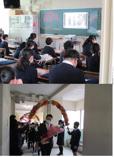 卒業式の後、各クラスでお別れをしました。最後は廊下に花道を作り、学校から送り出しました。