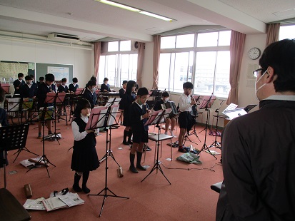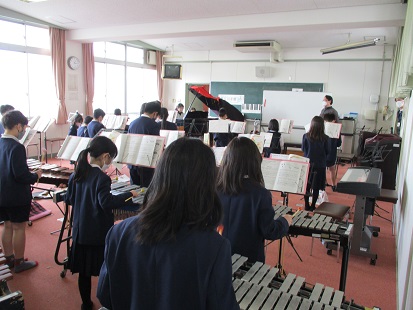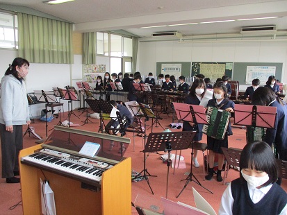 4年生が音楽の時間に専科の先生と学習した曲を、歌唱や合奏で発表していました。担任の先生も聞きに来て、感心されていました。