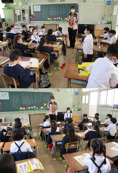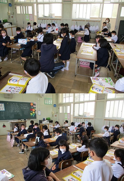 「わたしは、〇〇です。すきなものは〇〇です。」という内容を一人ずつ発表していました。