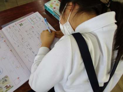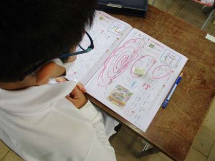 今日は「紙」と「行」という字でした。上手に書いて、先生に花丸をもらっていました。