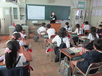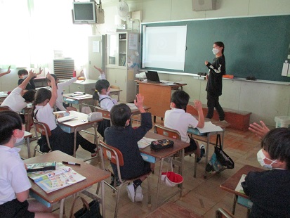 3年生が外国語活動の時間に、「Hello!」(あいさつをして友達になろう!)の学習をしていました。