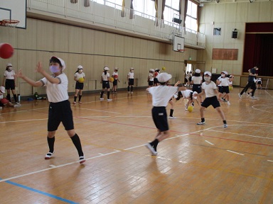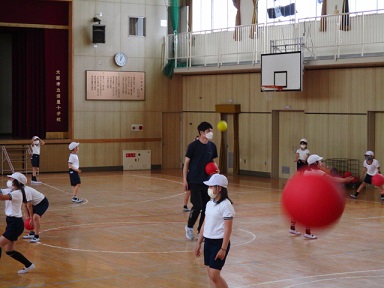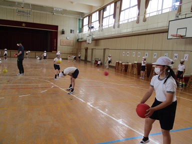 4年生が体育科の学習で、「ボールを使った運動」に取り組んでいました。