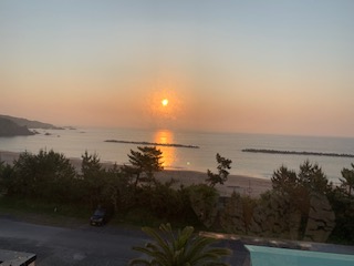 部屋の中に太平洋から昇った朝日の光が差し込んできます。よい天気です。昨夜はみんな元気でした。