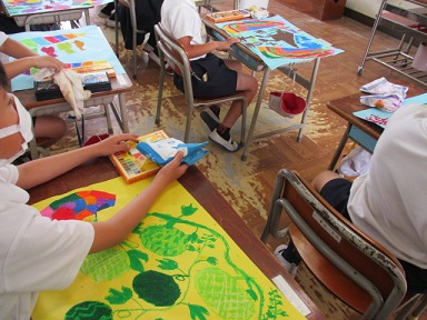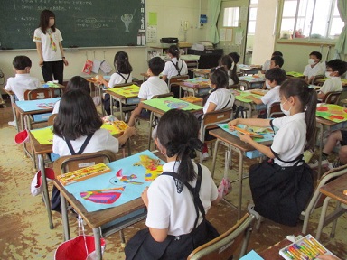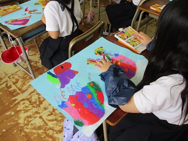 2年生が図画工作科の時間に、「ふしぎなたまご」を描いていました。