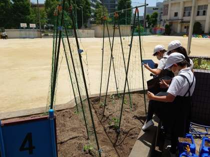 この写真は観察カードを書くときに使うほか,実が熟すまでためた後で成長の記録としてまとめようと計画しています。