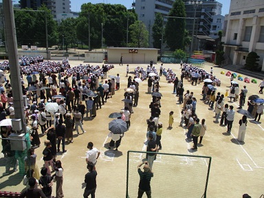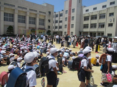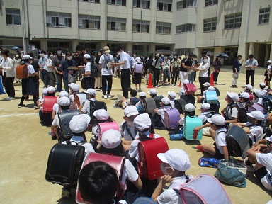 土曜授業の後、災害時を想定して、保護者の方への引き渡し訓練を行いました。