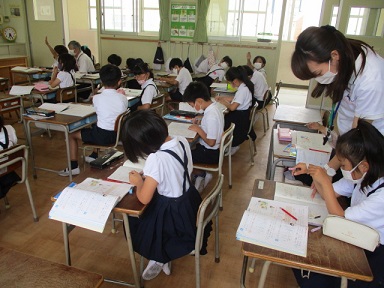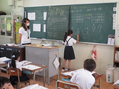 2年生が算数科の学習「たし算のきまりを考えよう」に取り組んでいました。