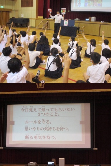 最後に、問題行動を起こさないために、「ルールを守る」「思いやりの気持ちを持つ」「断る勇気を持つ」を覚えておくようにお話がありました。