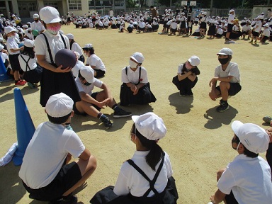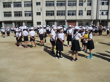 6月9日(木)児童集会がありました。今日の活動は「回してゴロクルゲーム」で、ひめっ子班ごとに輪になり、コロコロといったら右回り、クルクルといったら左回りでボールを回し、太鼓の音が鳴った時にボールを持っている子が学年組・名前と好きな〇〇を言うというゲームでした。〇〇はフルーツや動物などいろいろ変わります。