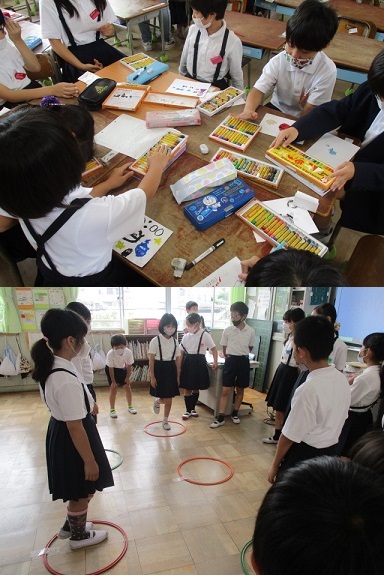明日16日のひめっ子まつりに向けて、それぞれの班で子どもたちが協力し合って、お店のゲームの準備をしていました。