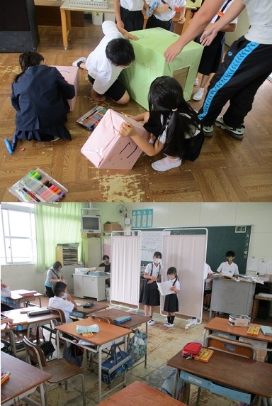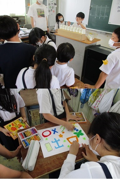 異年齢の子どもたちが仲よくゲームの準備を進めていました。