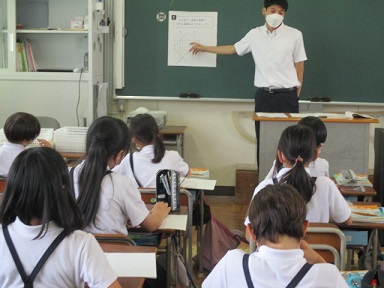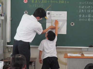 4年生が算数の時間に、垂直な直線・平行な直線を見つける学習に取り組んでいました。
