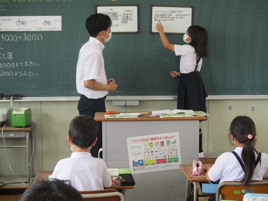 どのようにして解けばよいか、自分で考え、友達と相談し、全体で交流して導き出していました。