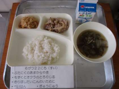 昨日はプール開きでしたが、あいにくの雨だったので、今日からプールが始まりました。給食をとりにくる時に、こども達の髪が濡れている姿は、給食室の夏の風物詩です。