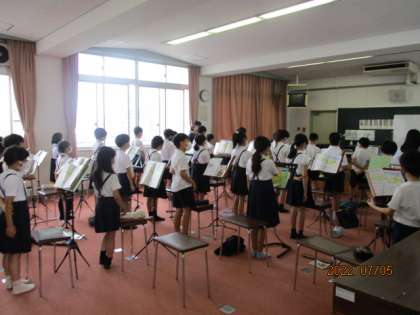 7月5日(火)音楽室から4年生のきれいな歌声が聞こえてきました。風のメロディーです。みんなで歌ったあとは、1人ずつみんなの前に立ってテストをしていました。緊張しながらも上手に歌っていました。聞いている人も熱心に聞いて、よかったところなどコメントに書いていました。
