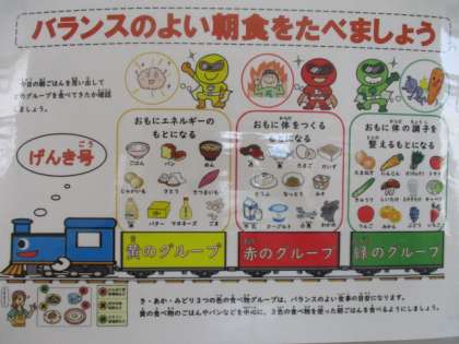 今日は、給食の放送で黄・赤・緑のグループのおさらいをしました。給食は、黄・赤・緑のグループが必ず入っています。給食を残さず食べて、1学期、元気に乗り切りましょう!