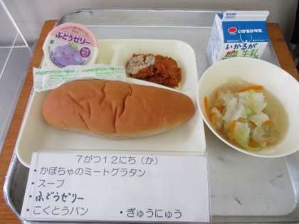 先日、お手紙でお知らせしましたが、本日、提供予定だったオレンジが入荷なく調達が困難なため、ぶどうゼリーに変更になりました。こども達は、ぶどうゼリーを楽しみにしてくれていたようで、安心しました。